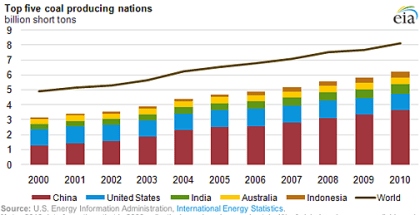 Filed under: Uncategorized | Tags: China, Chinese coal production, climate, CO2 production, coal, EIA, energy, global coal production, global warming, peak oil