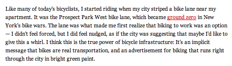 Filed under: Uncategorized | Tags: bicycling, bike commuting, bike lanes, bike snob, Doig, Salon, urban cycling