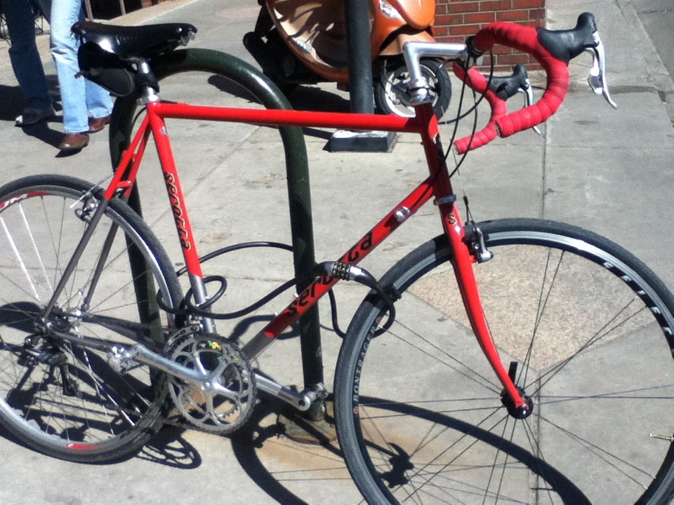 I’ve often seen a mid-range Trek mtb parked at this spot, formerly occupied by a bike rack.