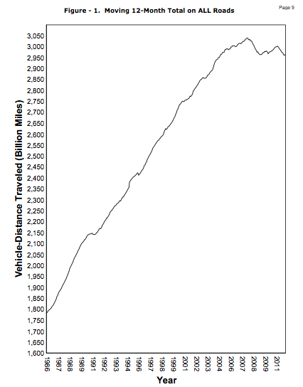 Filed under: Uncategorized | Tags: Brent, driving, oil prices, peak oil, vehicle miles traveled, Vmt
